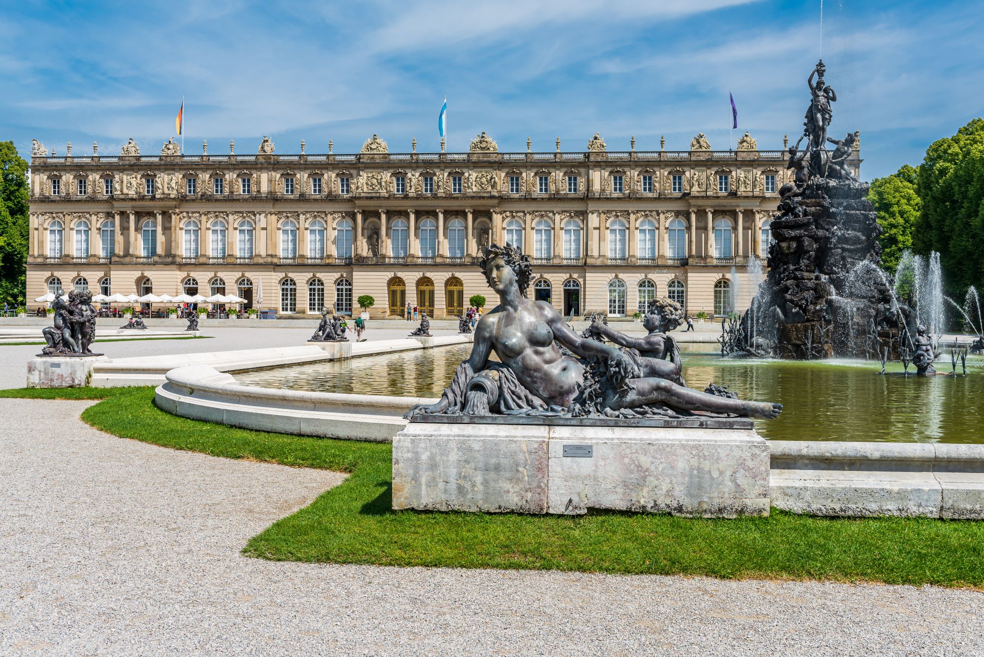 Zjutraj vožnja skozi predor Karavanke ter dalje čez Koroško in Salzburško proti Nemčiji. Kmalu po prestopu avstrijsko-nemške meje se bomo na Bavarskem ustavili v kraju Stock ob jezeru CHIEMSEE. Največje bavarsko jezero, ki je ledeniškega izvora, domačini pogosto imenujejo kar Bavarsko morje. Vkrcali se bomo na ladjo in odpluli na otok HERRENINSEL, kjer bomo obiskali dvorec Herrenchiemsee, ki ga je dal postaviti kralj Ludvik II. Bavarski kot kopijo slovitega baročnega dvorca v Versaillesu. V sicer nikoli dokončani stavbi je kralj prebil le nekaj dni. Mi se bomo sprehodili skozi razkošno opremljene sobane, ki po slogu povsem posnemajo francoski barok in rokoko. Bavarski kralj je z opremo soban želel celo prekositi francoski vzor. V sijajni veliki zrcalni galeriji, ki po velikosti prekaša versajsko, potekajo v poletnem času glasbeni koncerti ob romantični razsvetljavi s svečami. Okrog dvorca je urejen francoski park s številnimi vodnjaki, ki je prav tako zvest posnetek Le Nôtrove zasnove versajske ga parka. Sledi plovba na manjši FRAUENINSEL, kjer si bo mo ogledali samostansko cerkev in ostanke srednjeveške pfalce iz karolinške dobe. Ta je za zgodovino Slovencev še pose bej po membna, saj sta tam v svoji mladosti nekaj časa kot talca preživela karan tanska kneza Gorazd in Hotimir. Med svojim biva njem na dvoru bavarskega vojvoda Tassila III. sta sprejela tudi krščansko vero, kar je po zneje pomembno vplivalo na pokristjanjevanje Karan tan cev. Pozno popoldne bomo vožnjo nadaljevali proti osrčju Bavarskih Alp. Tu bomo obiskali starodavno benediktinsko opatijo ETTAL, ki s svojo imenitno poznobaročno podobo dopolnuje razgibano pokrajino južne Bavarske. Namestitev v hotelu. Večerja in nočitev.