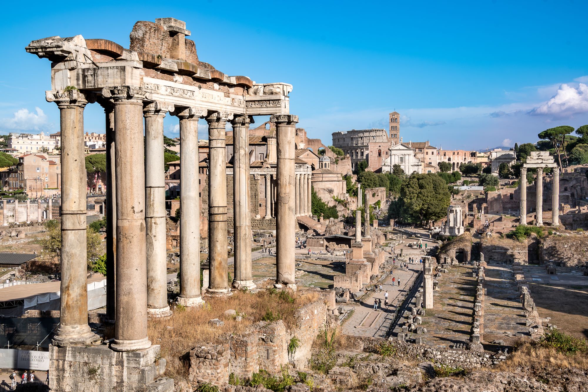 Po zajtrku vožnja do Rima in s podzemno železnico do središča mesta, kjer bomo najprej obiskali cerkev San Pietro in Vincoli, v kateri stoji nagrobnik papeža Julija II. z znamenitim Michelangelovim Mojzesom. Sprehodili se bomo do Koloseja in Konstantinovega slavoloka. Veličastni Flavijski amfiteater je eden največjih ostankov iz antičnega obdobja in priča o veščinah rimskih stavbarjev. Povzpeli se bomo na grič Palatin, kjer so v antiki bivali rimski cesarji. Ostanki njihovih palač so danes del Farnezijskih vrtov, ki so jih zasadili v 16. stoletju. Dlje časa se bomo zadržali v srcu nekdanjega antičnega mesta, na razsežnem trgu Forum Romanum, kjer številni ostanki burne preteklosti pričajo o veličini Rima. Preko cesarskih forumov se bomo vrnili na Beneški trg. Sledi ogled zbirke v galeriji Doria Pamphilj, ki domuje v največji zasebni palači v mestu. Palača in zbirka sta že stoletja v lasti istoimenske knežje družine. V razkošno opremljenih prostorih bomo lahko poleg antičnih umetnin občudovali zbirko del baročnih kiparjev Berninija in Algardija ter številna dela velikih mojstrov renesančnega in baročnega slikarstva (Rafaela, Memlinga, Bruegla, Tiziana, Caravaggia, Rubensa, Velazqueza). Povratek v hotel v termah Fiuggi. Večerja in nočitev.